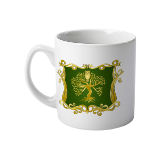 Caceca alusiva à Classe dos Druídas com o brasão da classe atrás e na frente a frase: